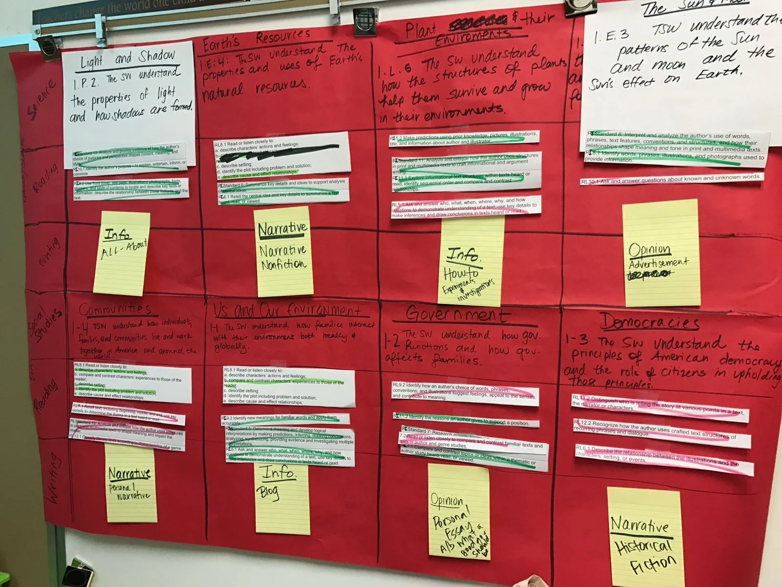 First grade curriculum mapping that aligns Science and Social Studies with Language Arts.